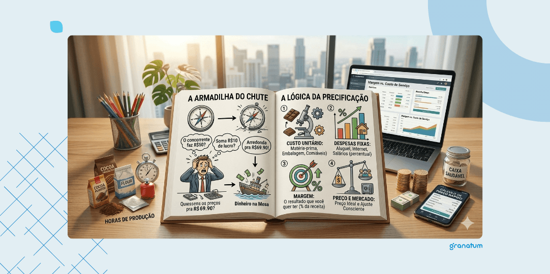 Preço não é só número bonito na etiqueta. Ele precisa conversar com seus custos, suas despesas e com o resultado que você quer ter no final do mês.